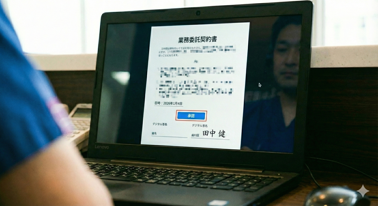 サービス契約内容(開始日、期間、内容、金額など)についてご説明をいたしますので、電子契約書類に署名をお願いいたします。