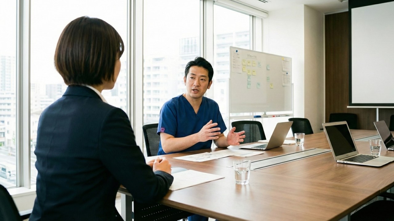 月例ミーティングの運用、リーダー支援、1on1の設計・改善を通じて、仕組みが“当たり前”になるまで伴走します。定期的に振り返りを行い、数字/患者価値/人材育成の3領域で成果が継続する形に整えます。